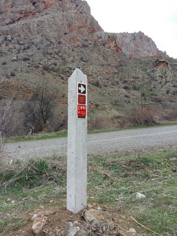 The 1st marking sign (post) is located in 39°40'55.8"N 45°12'40.3"E position. You will have to drive to the start point via E117, H10 & H40 connection roads, for about 117 km (2h11m). Shall you want to pass through this trail backwards or instruct your driver to get to the end point, you will have to get to the last marking sign located in 39°41'04.1"N 45°13'59.2"E position, at Noravank Monastery which is around 117 km (2h11m) far from the Capital Yerevan via E117 & H10 connection roads.