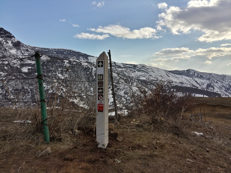 The 1st marking sign (post) is located in 40°06'52.1"N 44°43'47.4"E position. You will have to drive to the start point via H3 road, for about 30 km (48m). Shall you want to pass through this trail backwards or instruct your driver to get to the end point, you will have to get to the last marking sign located in 40°08'25.3"N 44°49'06.6"E position, at Geghard Monastery which is around 40 km (1h) far from the Capital Yerevan via H3 road.